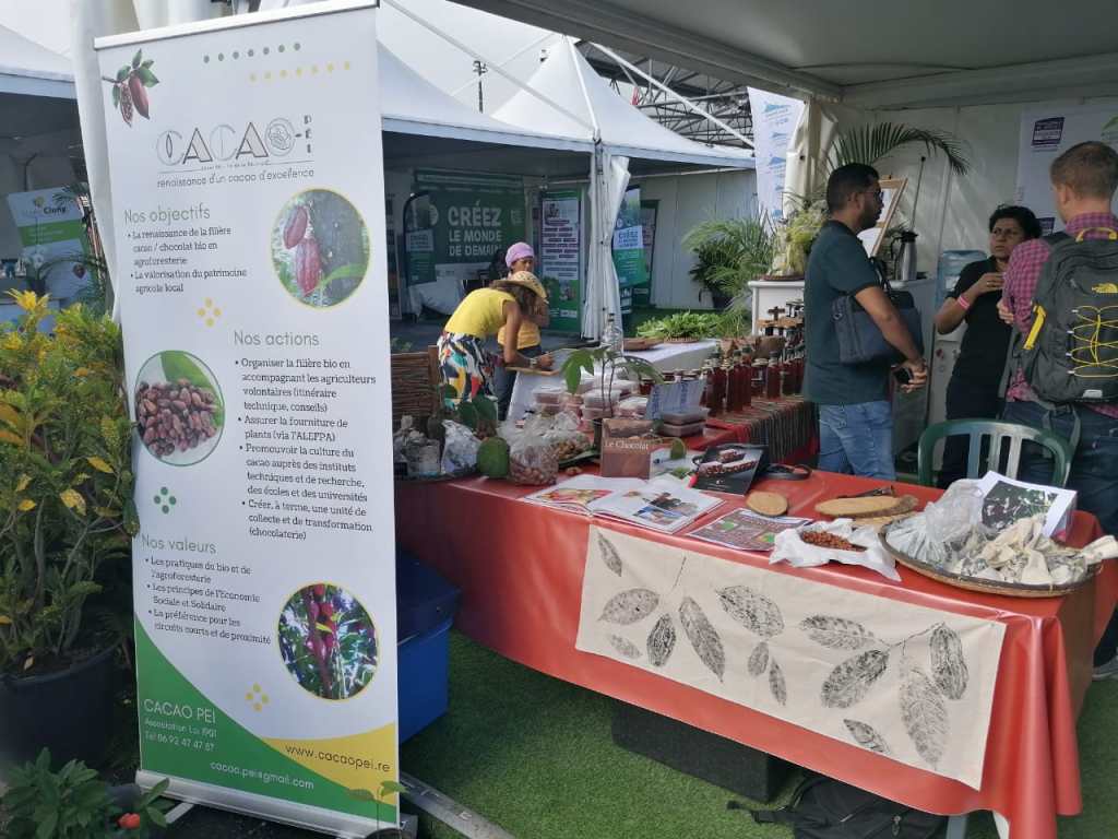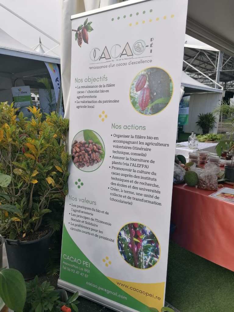Pour l’édition 2022 (du 13 au 22 mai), Cacao Péi est accueilli sur le stand de la Chambre d’Agriculture de La Réunion. Nos bénévoles participent à l’animation du stand de forts belles manières, et le succés est au rendez-vous (voir les photos ci-après). Le grand public découvre nos actions dans la promotion d’une méthode agricole d’avenir: l’agroforesterie.