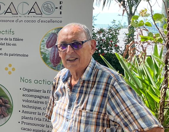 Retraité de l’agriculture, très intéressé par l’histoire et le développement agricole de La Réunion, j’ai adhéré à l’association Cacao Pei qui me permet avec son équipe de volontaires très motivés de participer au renouveau du Cacao à La Réunion